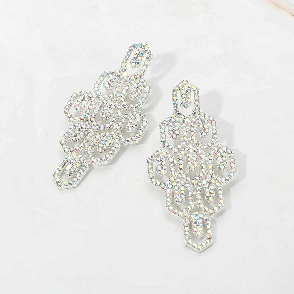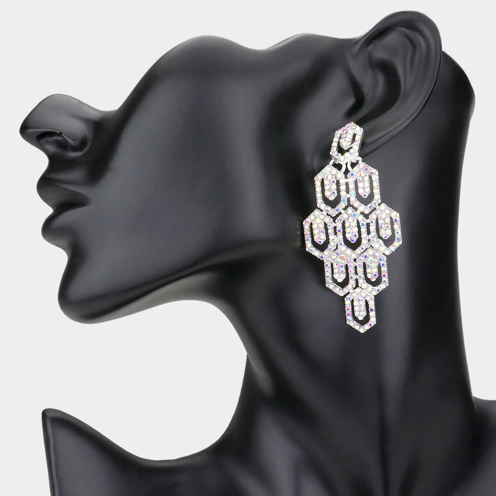 Rhinestone Pave Hexagon Link Statement Evening Earrings
