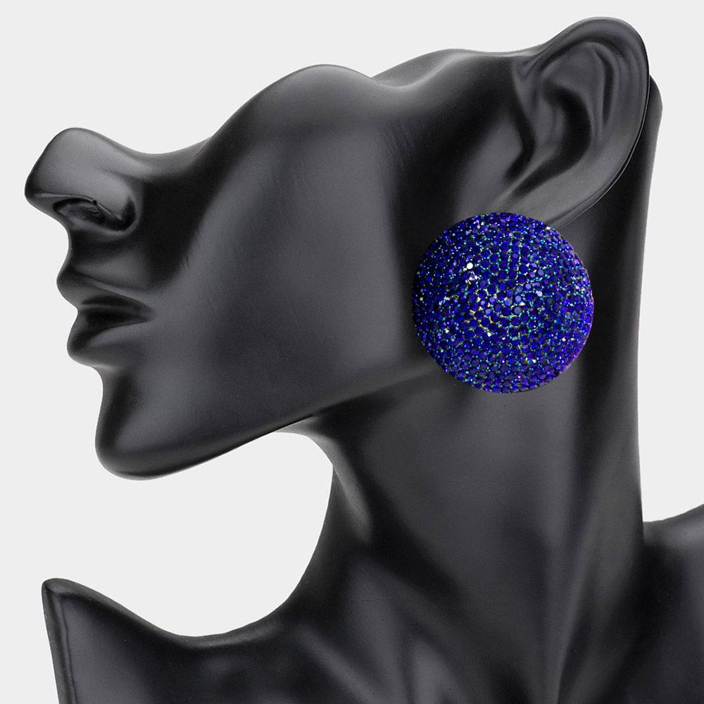 • These bold round statement earrings shimmer with countless crystals, creating a dazzling and sophisticated look. Perfect for special occasions or evening wear, their striking design captures attention effortlessly, adding a glamorous touch to any outfit with timeless elegance.