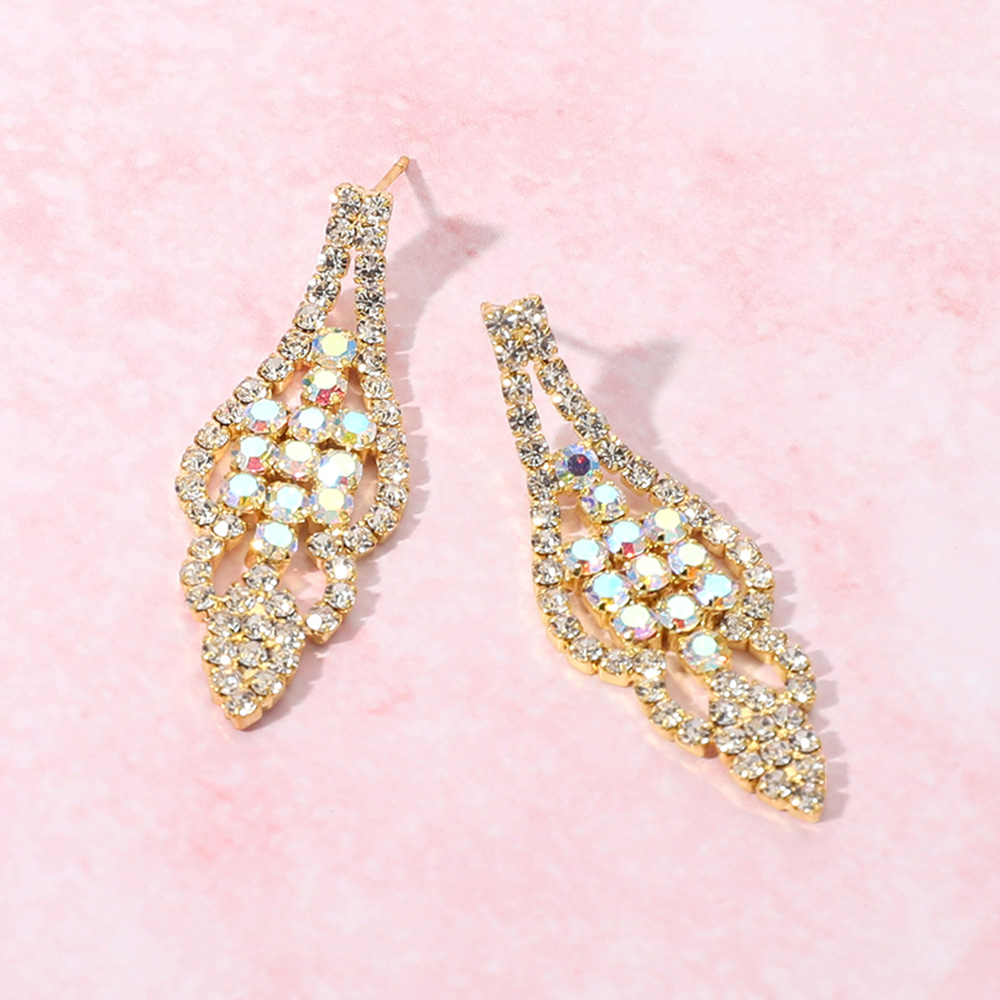 Faceted Teardrop Stone Chandelier Dangle Evening Earrings