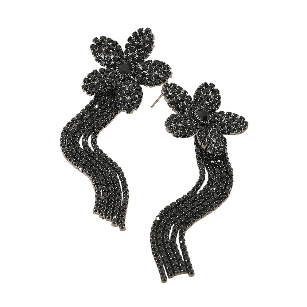 Rhinestone Paved Flower Fringe Evening Earrings