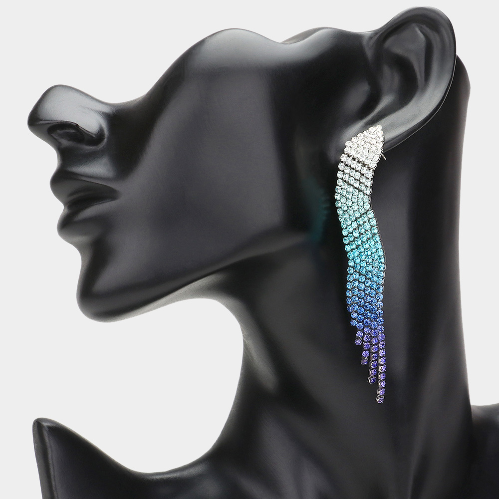 Rhinestone Paved Fringe Dropdown Evening Earrings