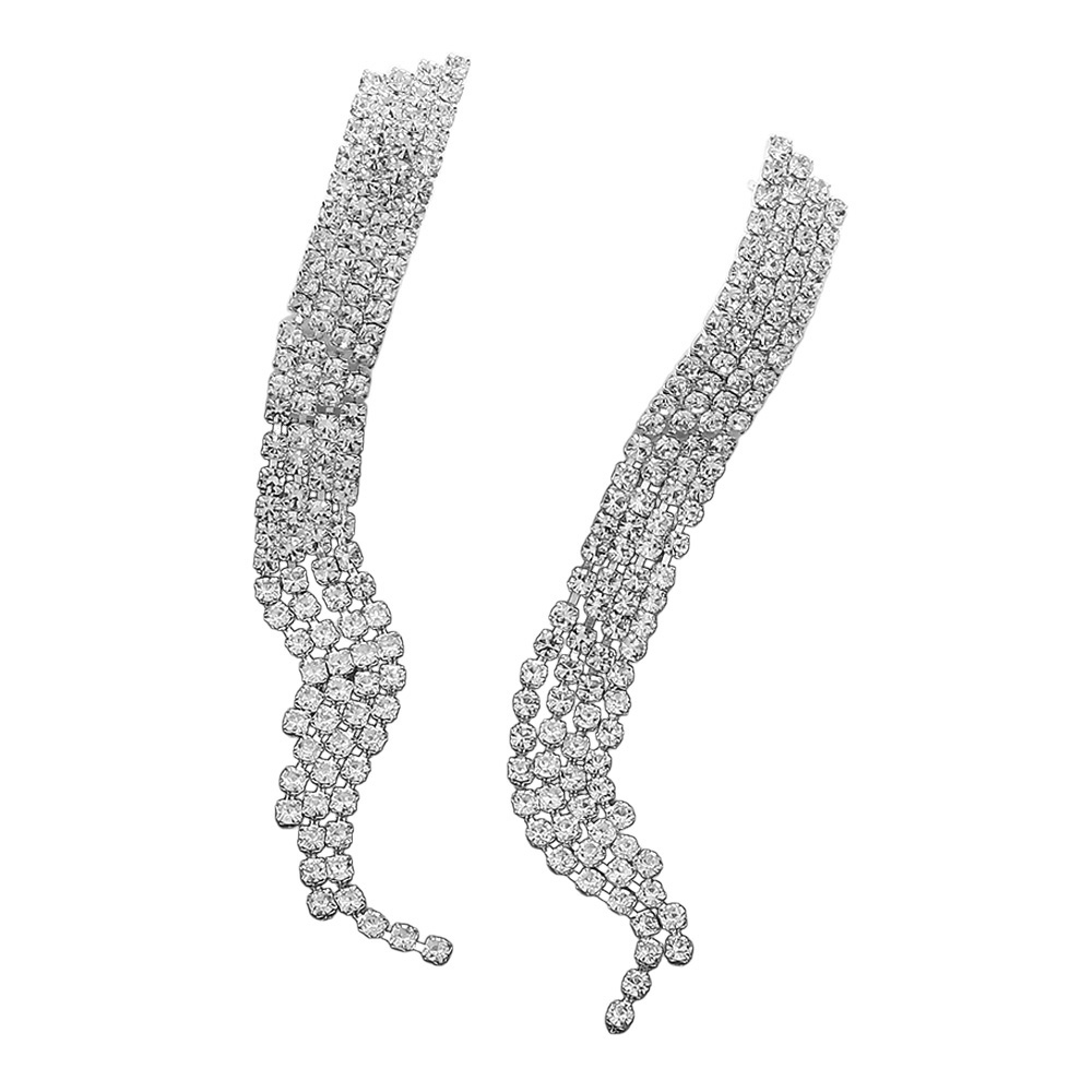 Rhinestone Paved Fringe Dropdown Evening Earrings
