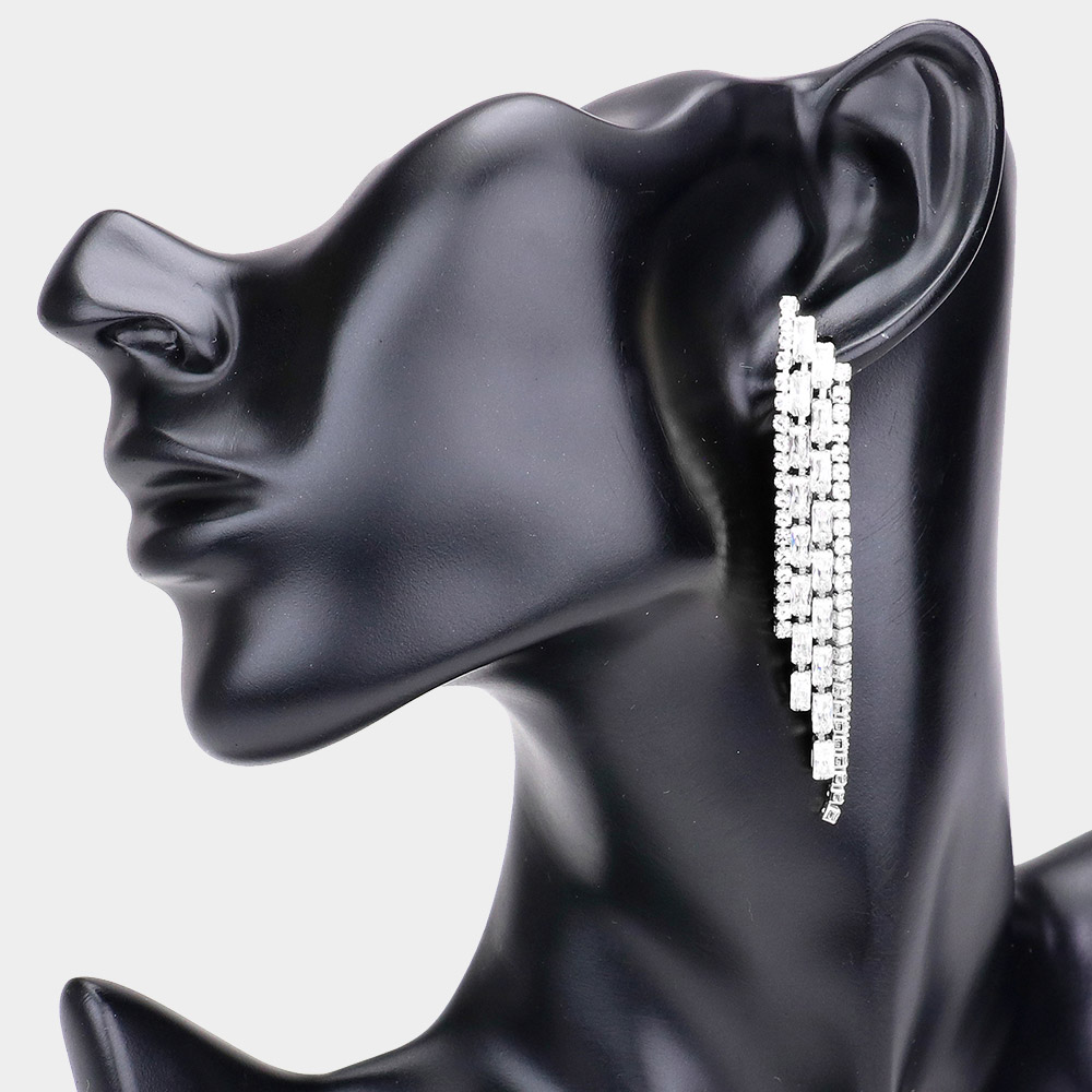 Rhinestone Rectangle Stone Dangle Evening Earrings