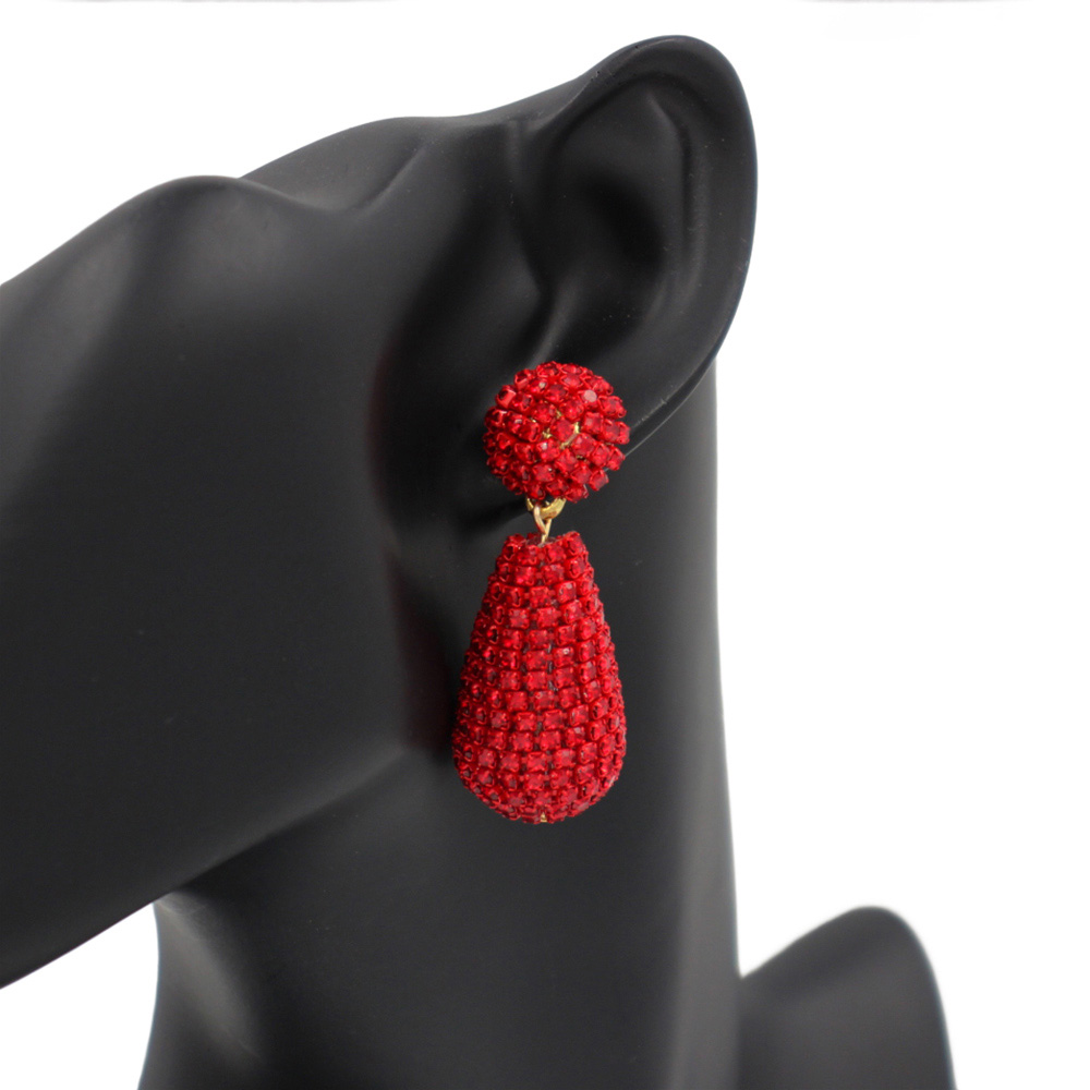 • Elegant teardrop crystal ball earrings with dazzling pave detailing. Designed to catch the light, these statement drop earrings are perfect for evening wear, weddings, or parties, adding sophistication and sparkle to any outfit with their bold and glamorous design.