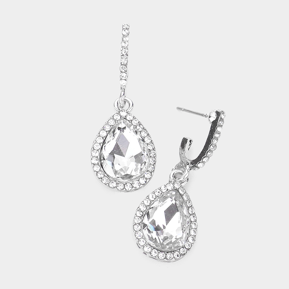 Rhinestone Trimmed Teardrop Stone Dangle Evening Earrings