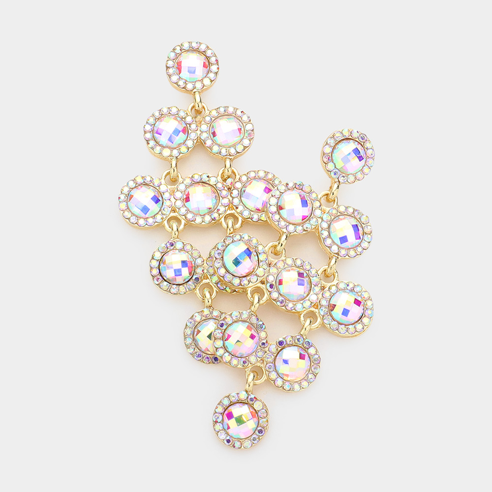 Round Stone Cluster Vine Dangle Evening Earrings