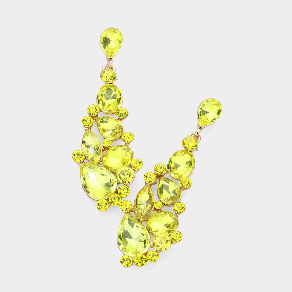 Round Teardrop Stone Cluster Dangle Evening Earrings