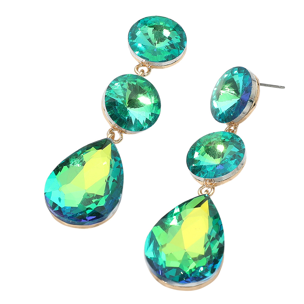 • Bold teardrop dangle earrings with faceted stones and round stud accents. Designed for a striking, glamorous touch, these earrings are ideal for evening events, weddings, or adding sparkle to any special occasion.