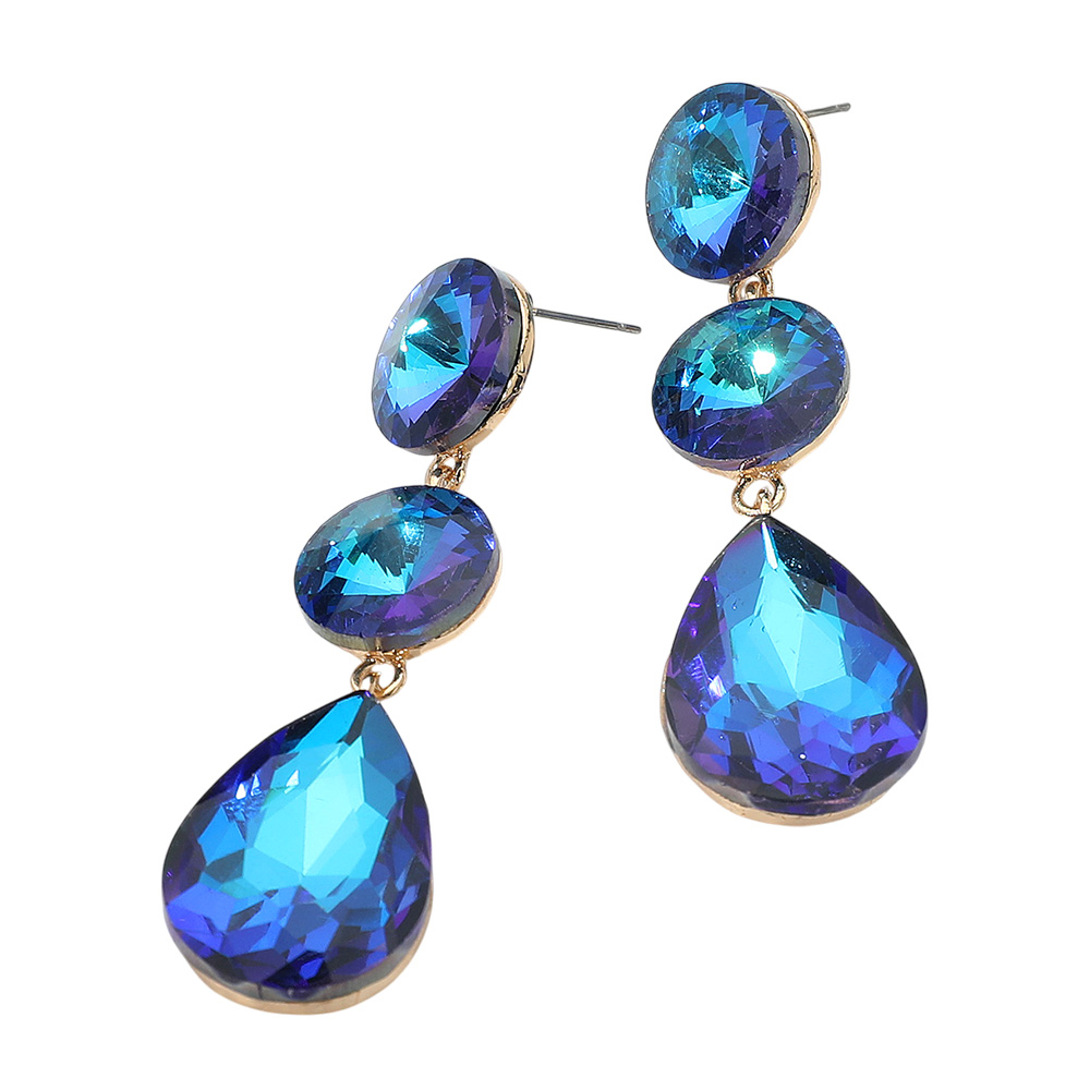 Oval Glass Stone Cluster Dangle Evening Earrings
