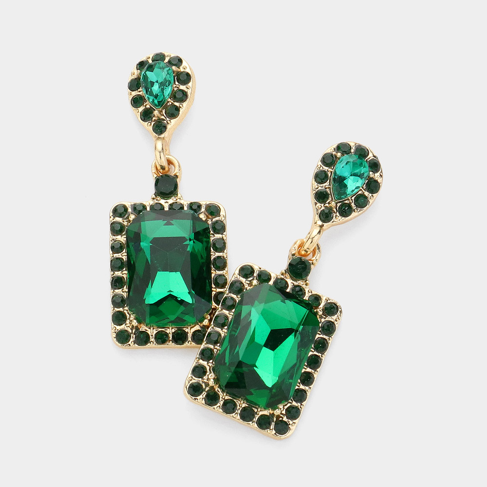 Square Stone Cluster Dangle Evening Earrings