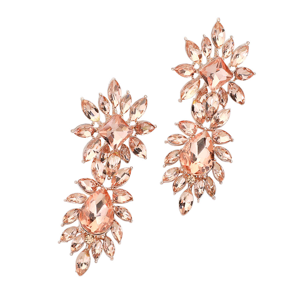 Square Teardrop Accented Marquise Stone Cluster Evening Earrings
