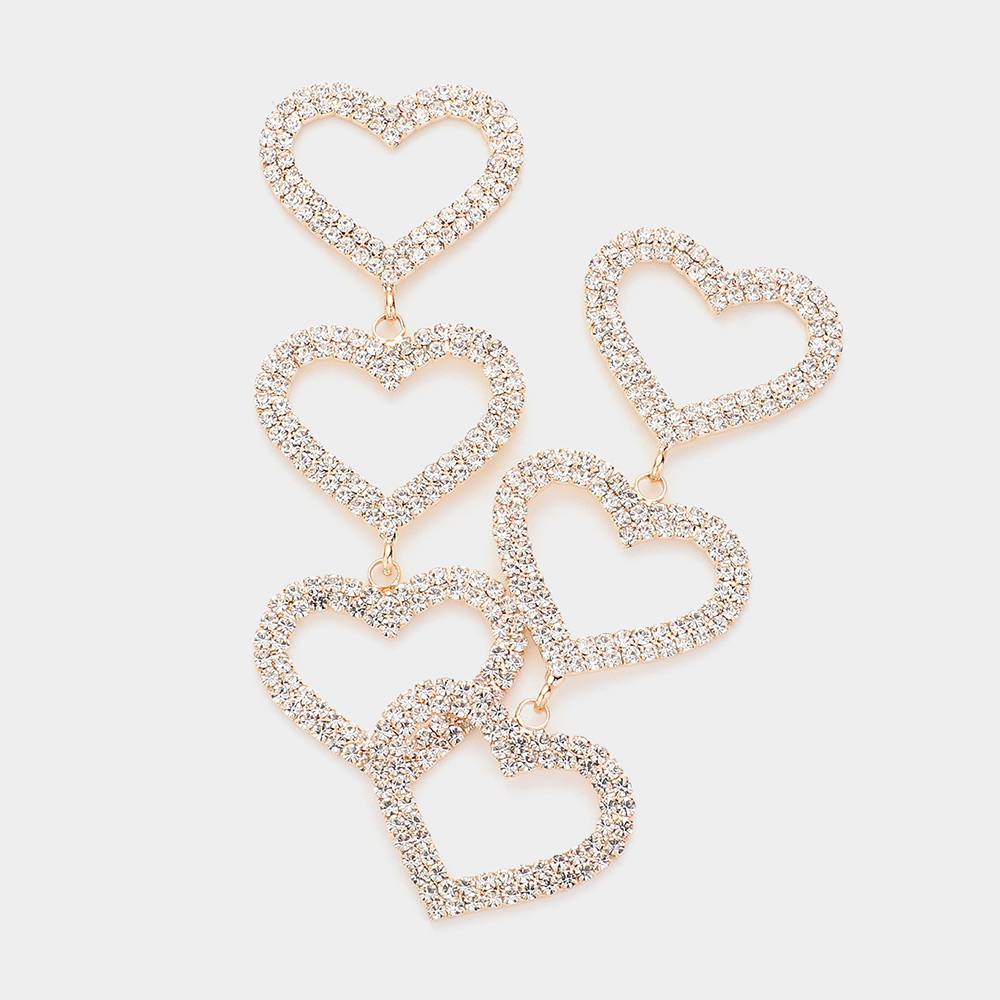 Stone Paved Open Heart Link Dropdown Evening Earrings