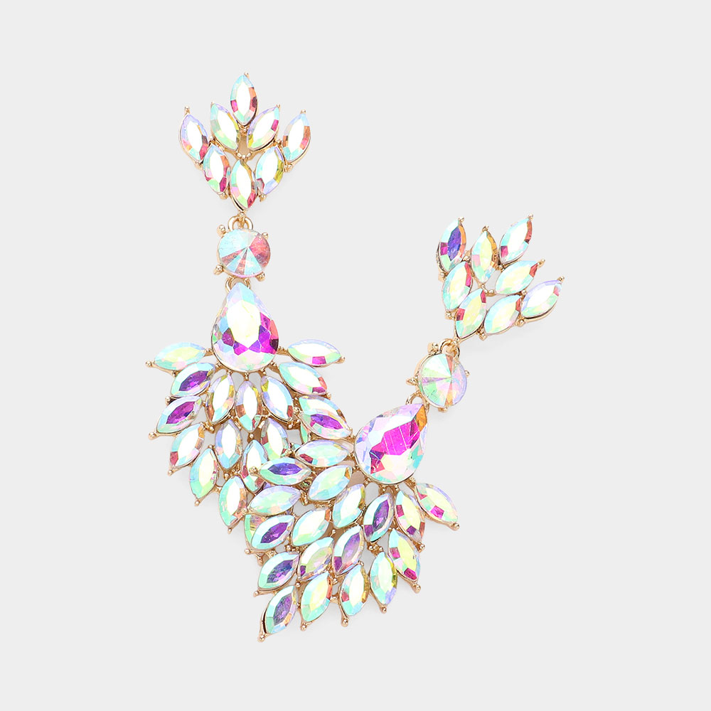 Teardrop Accented Marquise Stone Cluster Dangle Evening Earrings