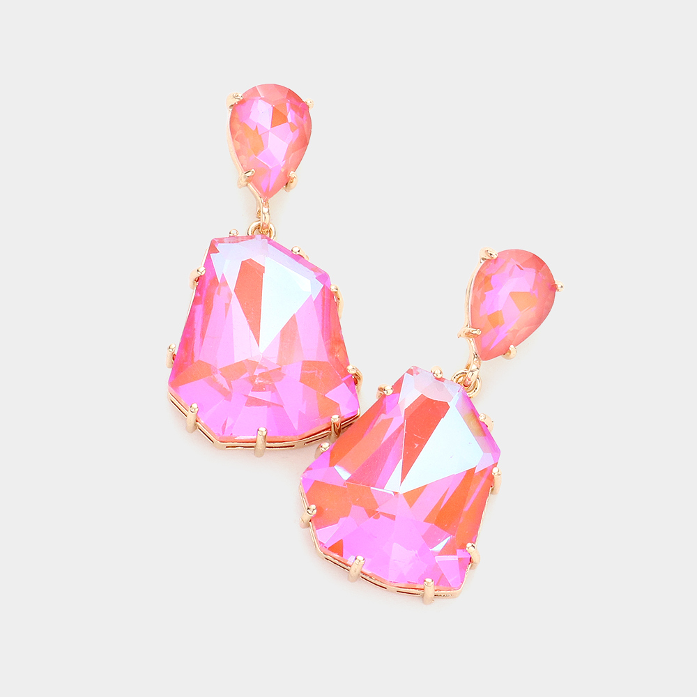 Teardrop Angled Stone Link Dangle Evening Earrings