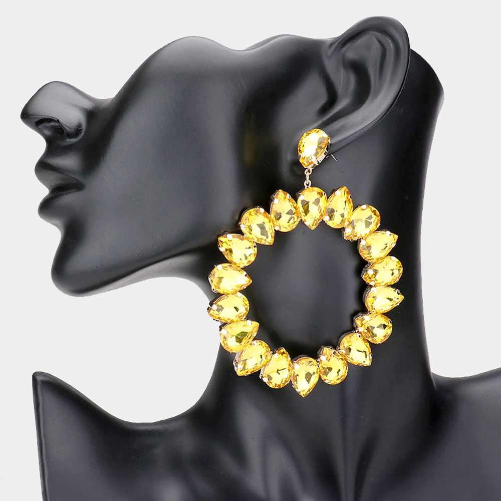 Teardrop Glass Crystal Open Circle Evening Earrings
