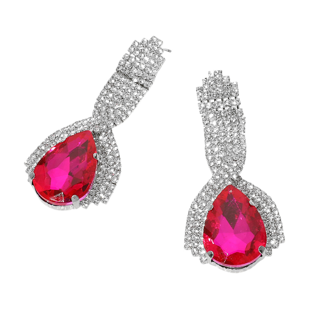 Teardrop Glass Stone Pointed Rhinestone Paved Evening Earrings