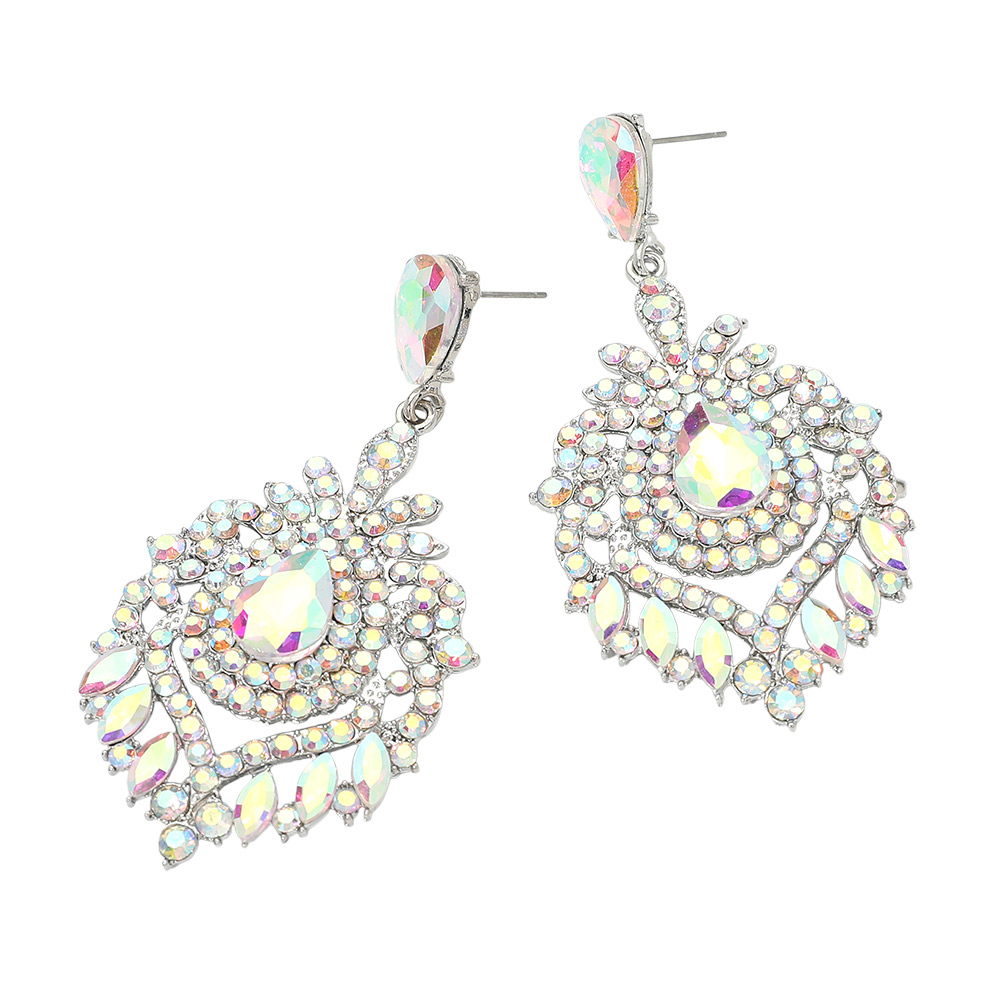 • These statement crystal drop chandelier earrings feature an intricate layered design with faceted accents that catch the light from every angle. Designed to elevate evening looks, weddings, and special events, they add bold sparkle and refined glamour while remaining comfortable to wear. A striking accessory that instantly enhances dresses, formal outfits, or party-ready styles.