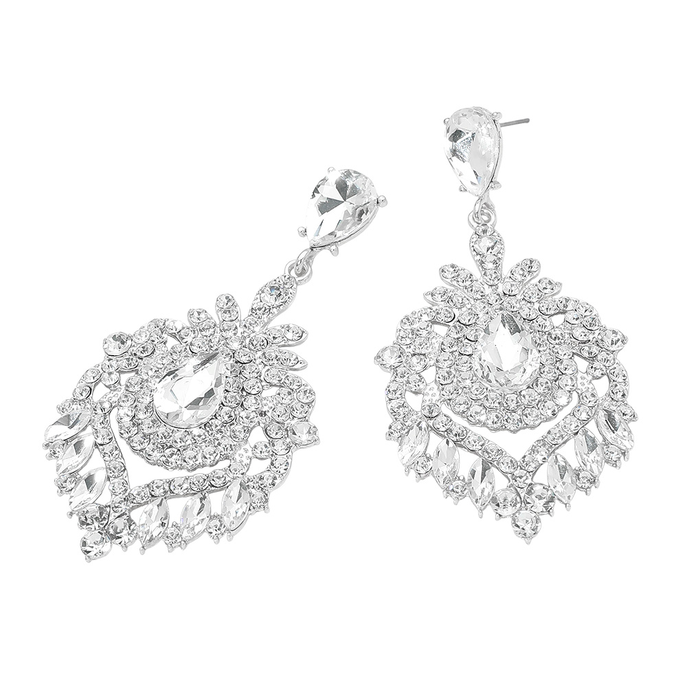 Teardrop Marquise Cluster Embellished Chandelier Drop Evening Earrings