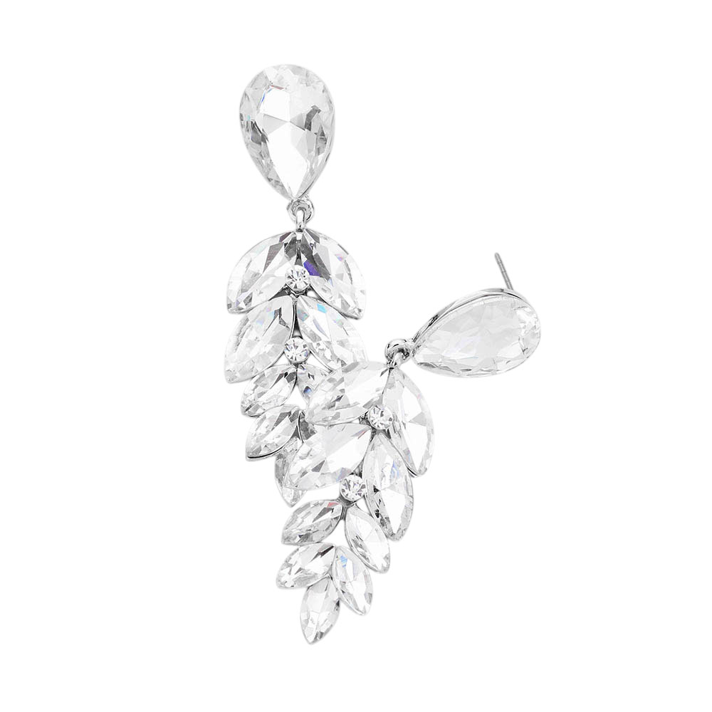 • Elegant drop earrings featuring a teardrop top and cascading marquise-cut stones arranged in a leaf-inspired silhouette. Light-catching and refined, these statement earrings add a glamorous finishing touch to evening outfits or special occasions.