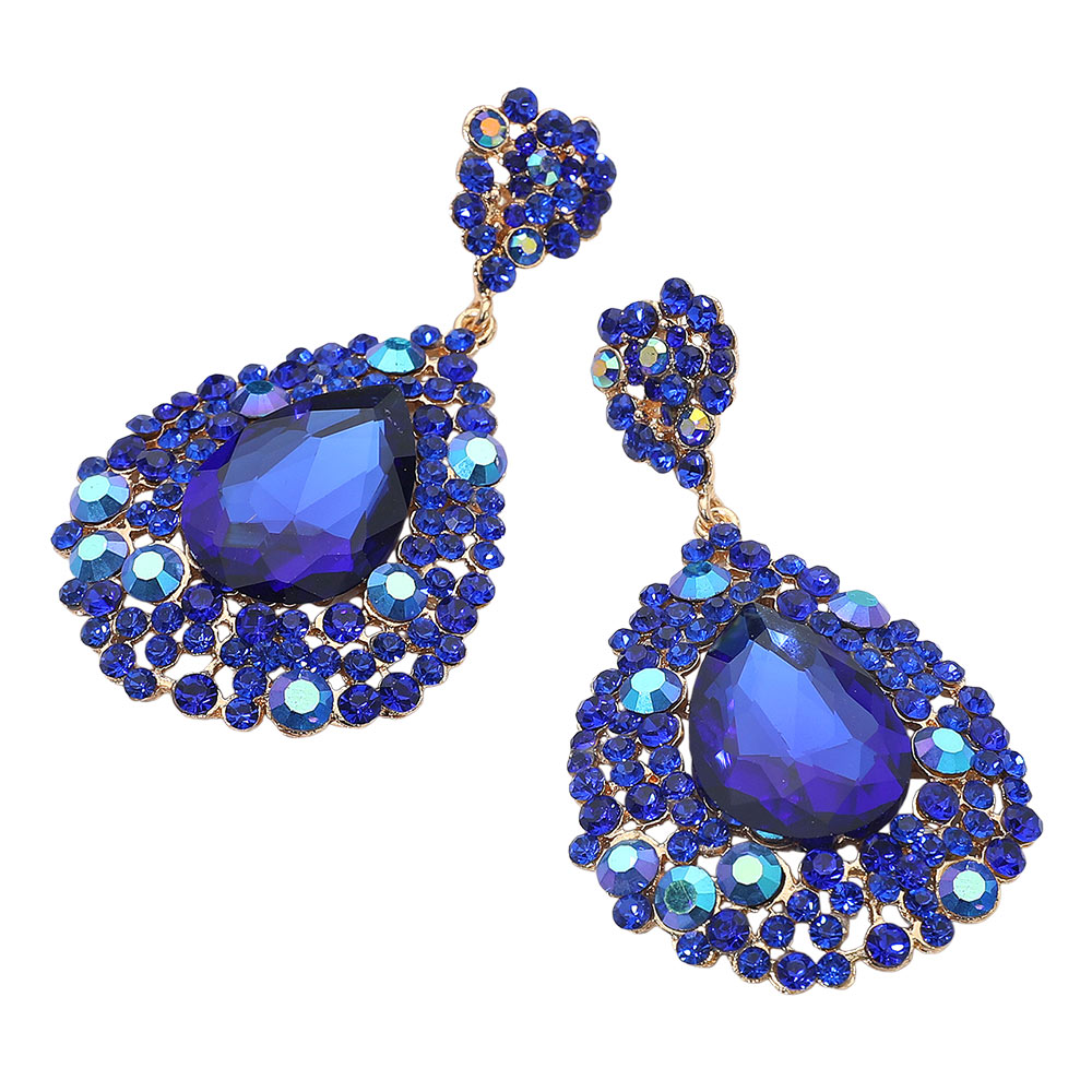 Teardrop Pointed Rhinestone Embellished Dangle Evening Earrings