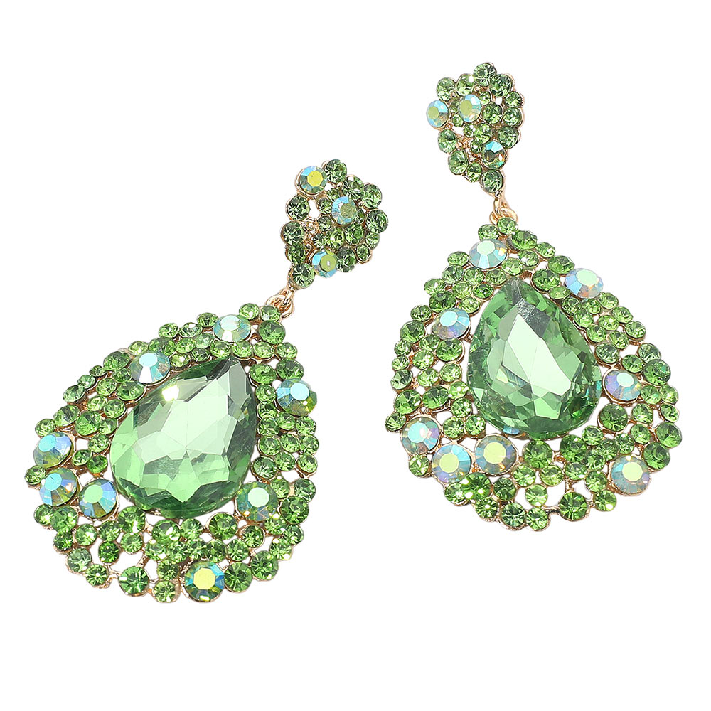 Teardrop Pointed Rhinestone Embellished Dangle Evening Earrings Teardrop Pointed Rhinestone Embellished Dangle Evening Earrings