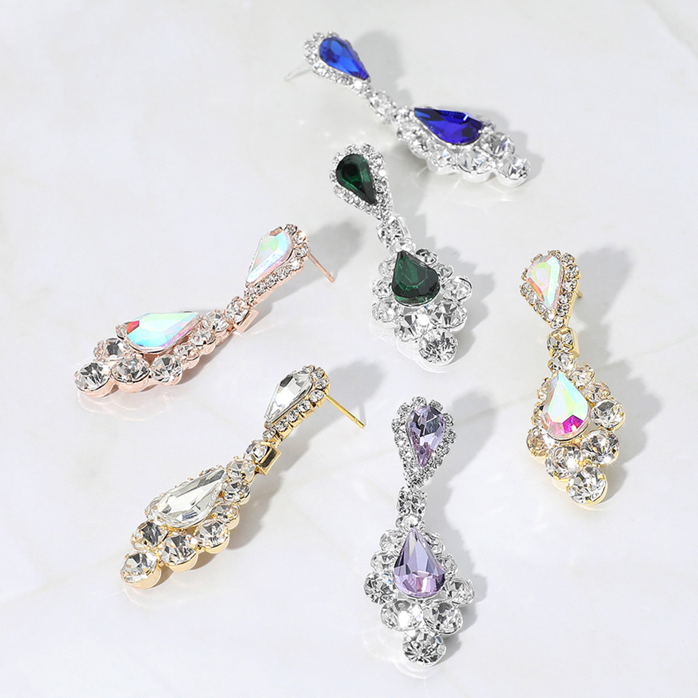 Rhinestone Trim Teardrop Stone Accented Evening Earrings