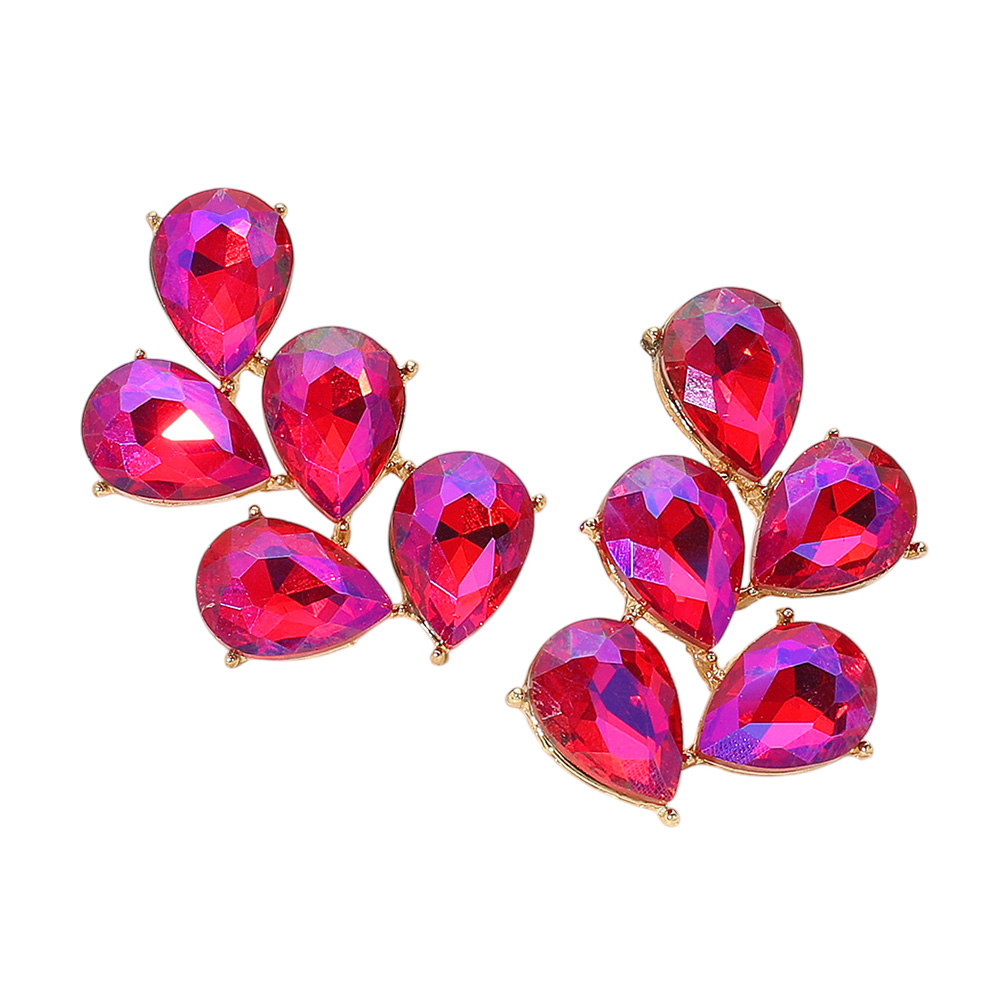 • Make a striking impression with these teardrop cluster statement earrings featuring faceted detailing and a dramatic silhouette. Perfect for elevating evening wear, parties, and special occasions with a bold, glamorous touch.
