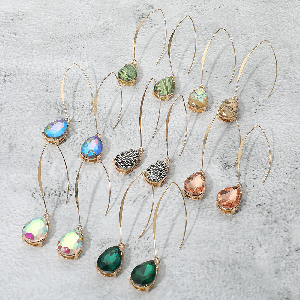 • Add refined style to your look with these teardrop dangle earrings featuring a sleek hook design and faceted gemstone accent. Perfect for both casual wear and special occasions.