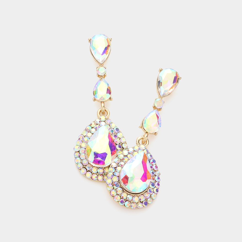 Triple Teardrop Stone Link Dangle Evening Earrings