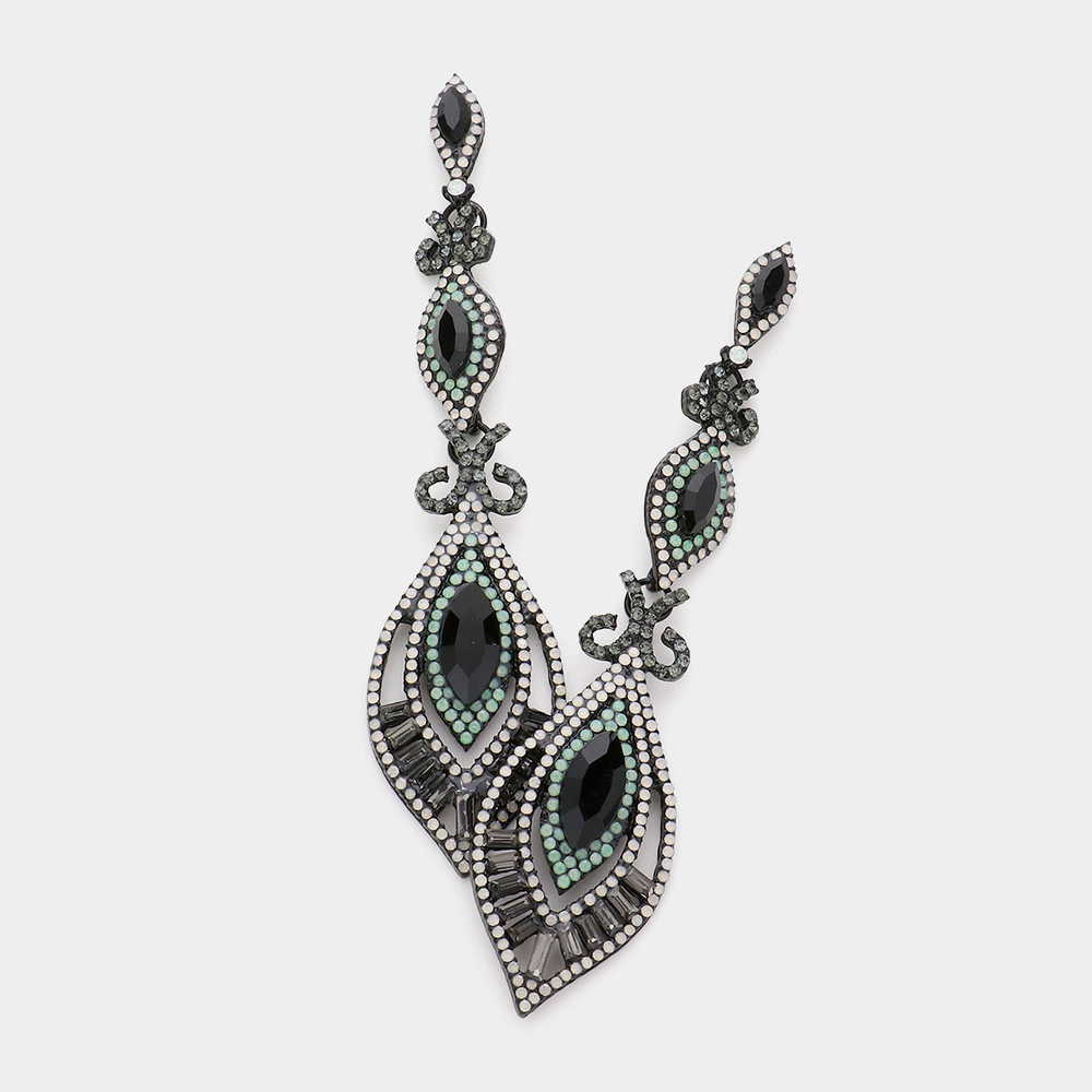 Victorian Triple Marquise Glass Crystal Evening Earrings