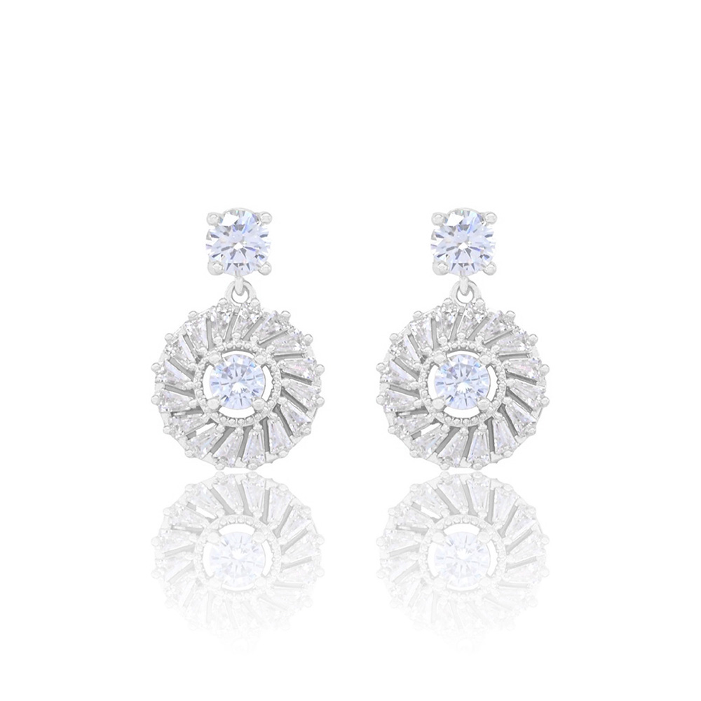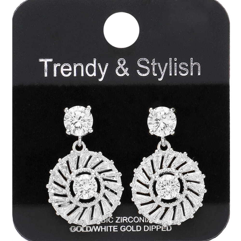 White Gold Dipped CZ Stone Embellished Dangle Evening Earrings