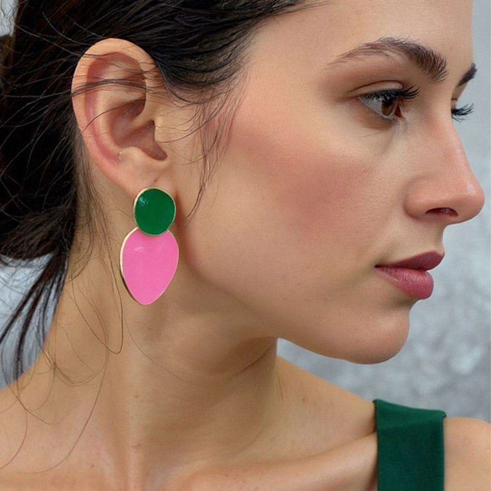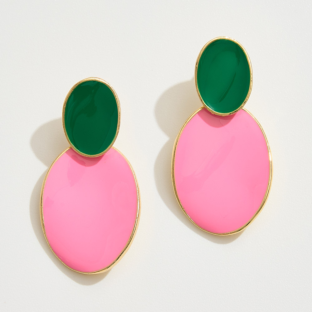 Details • Size : 0.8" X 1.6" • Post Back • Make a playful statement with these bold enamel double drop earrings, designed in contrasting tones for a fresh, modern edge. Lightweight yet striking, they bring vibrant flair to both everyday outfits and evening ensembles, perfect for trendsetters who love standout accessories. • Brass • Gold Dipped • Hypoallergenic • Lead and Nickel Compliant • Made In Korea