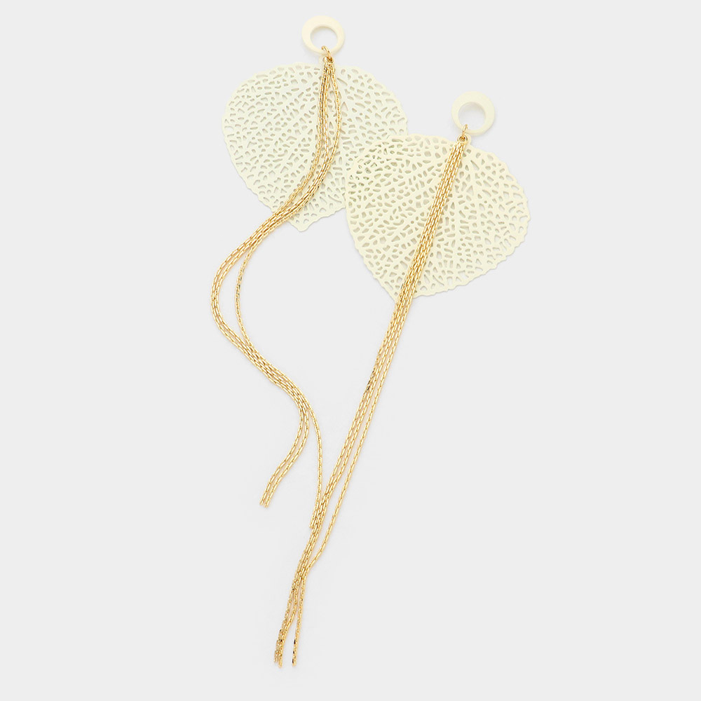 18K Gold Dipped Filigree Leaf Chain Tassel Earrings
