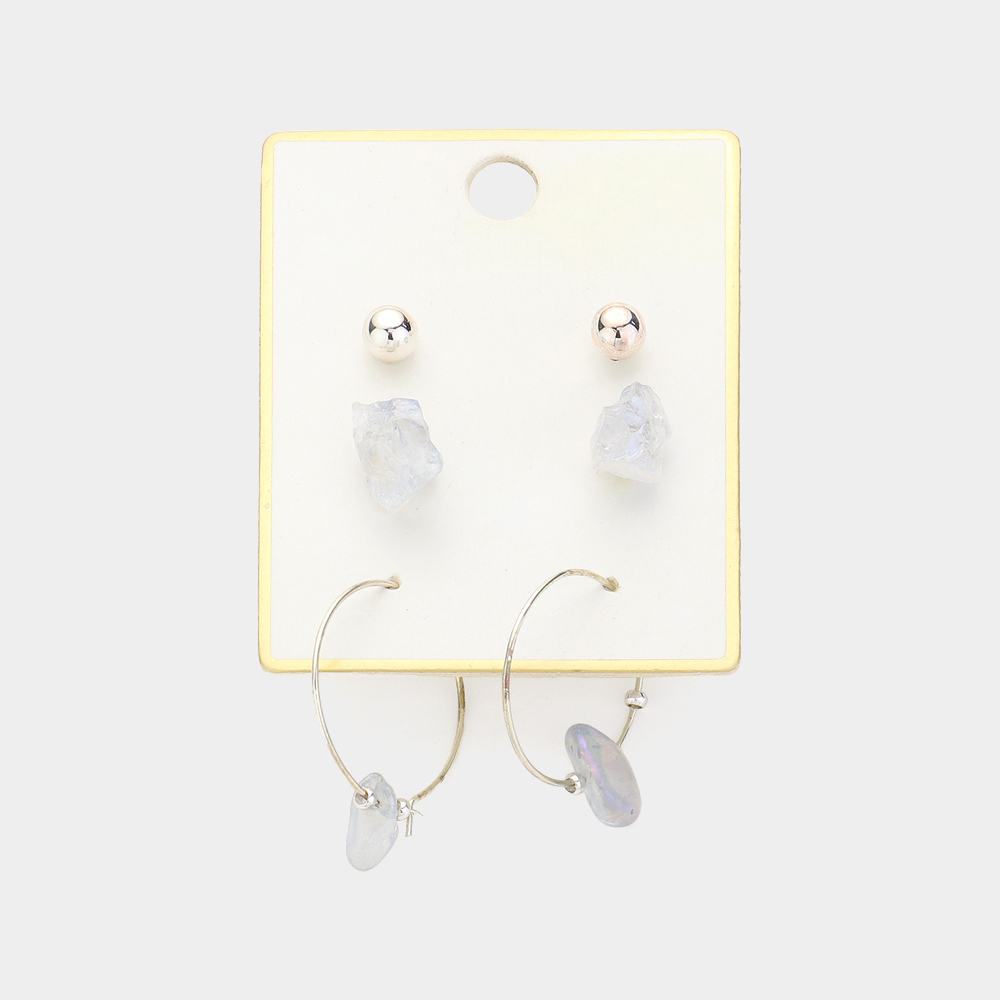 3PAIRS - AB Aurora Borealis Natural Stone Earrings Set