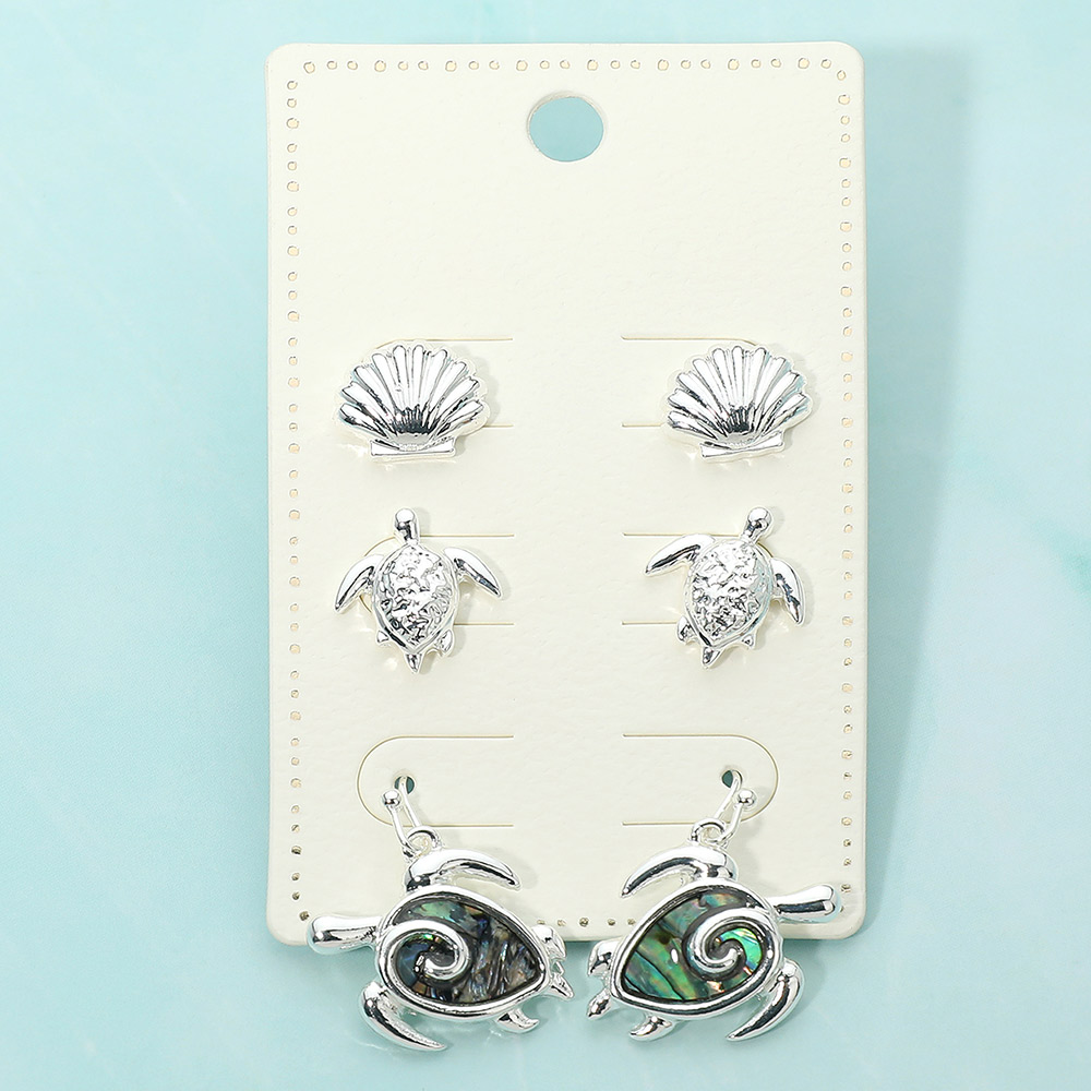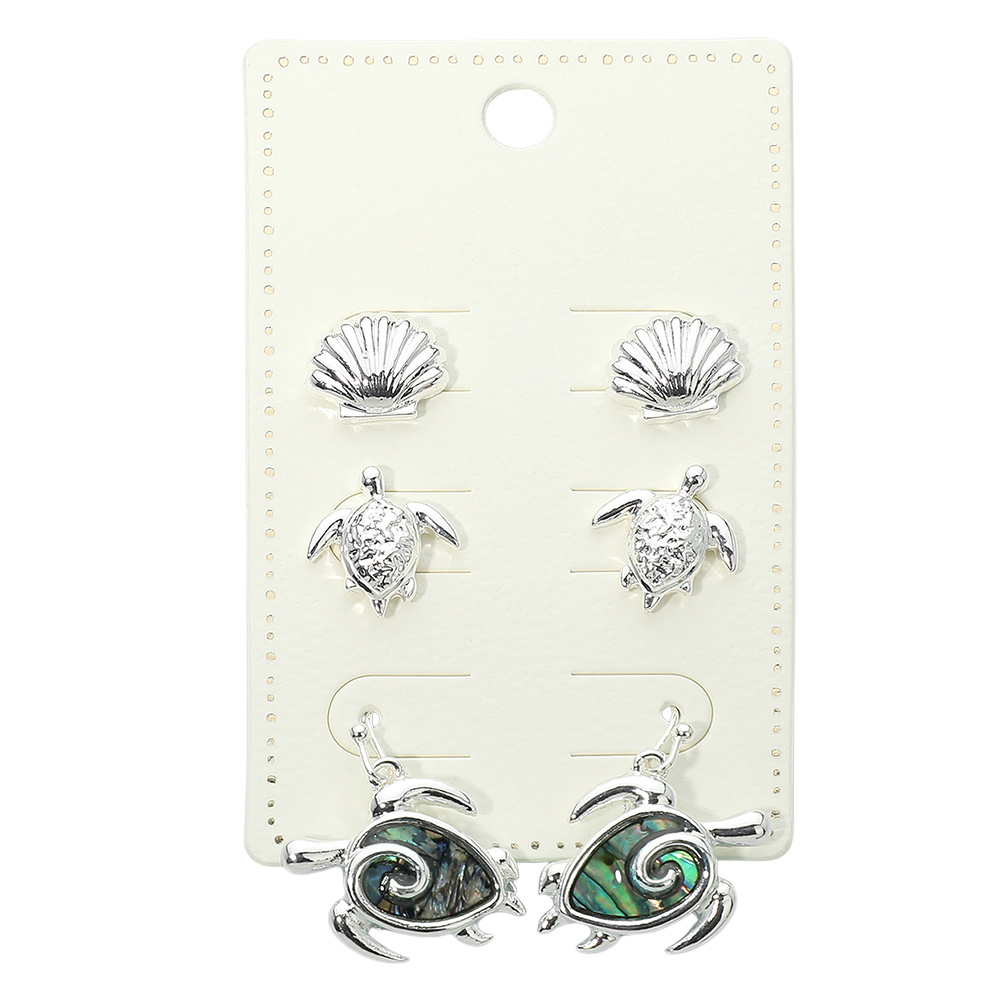 3Pairs - Metal Shell Turtle Stud Abalone Stud Drop Dangle Earring Set