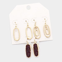 3Pairs - Stone Cluster Hexagon Dangle Earrings