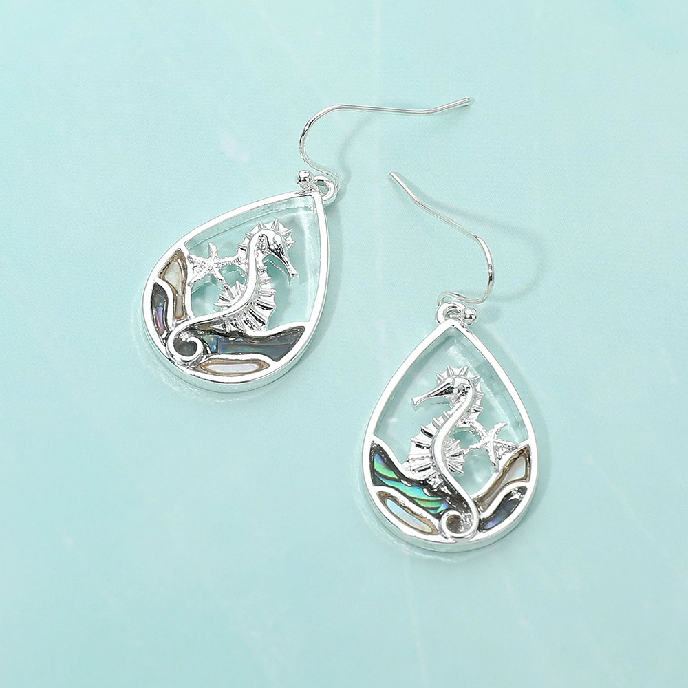Abalone Seahorse Starfish Wave Teardrop Dangle Earrings
