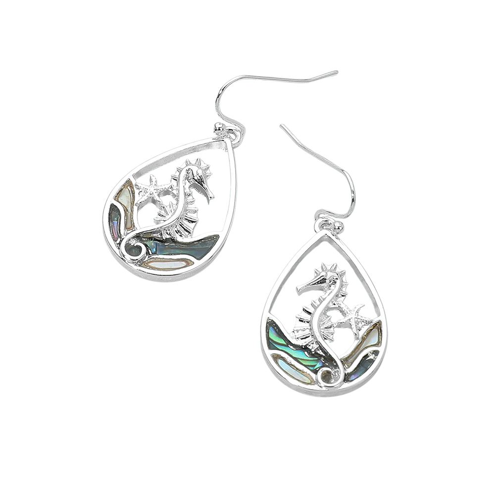 Abalone Seahorse Starfish Wave Teardrop Dangle Earrings Abalone Seahorse Starfish Wave Teardrop Dangle Earrings