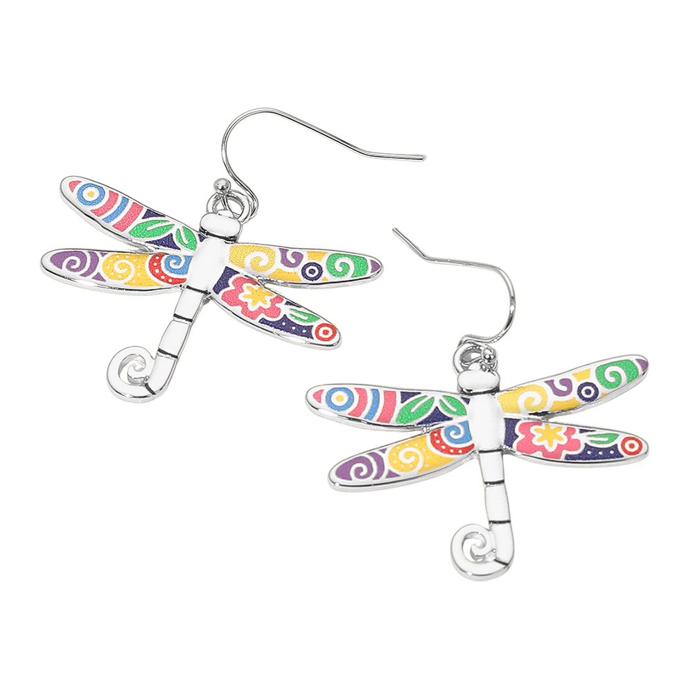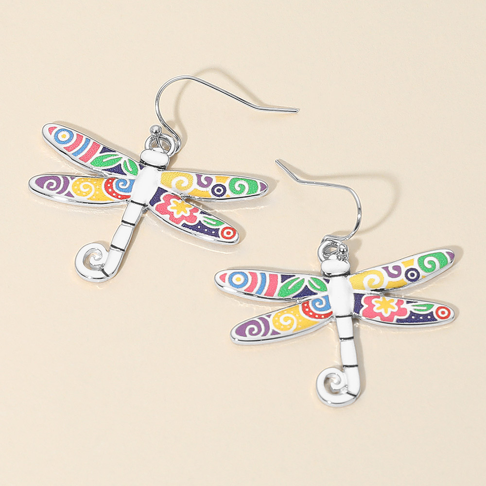 • These dragonfly drop earrings showcase expressive wing patterns with swirling, artistic detailing that adds a lively touch to any outfit. Designed for those who appreciate creative, standout accessories, they bring a whimsical charm and unique visual appeal to everyday or special-occasion styling.