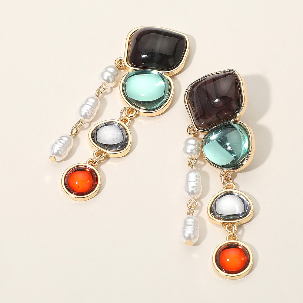 Artistic Statement Design Colorful Stone Pearl Drop Earrings