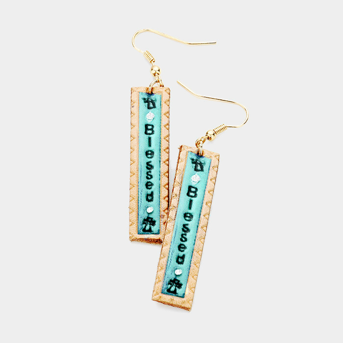 "Blessed" Genuine Leather Bar Dangle Earrings