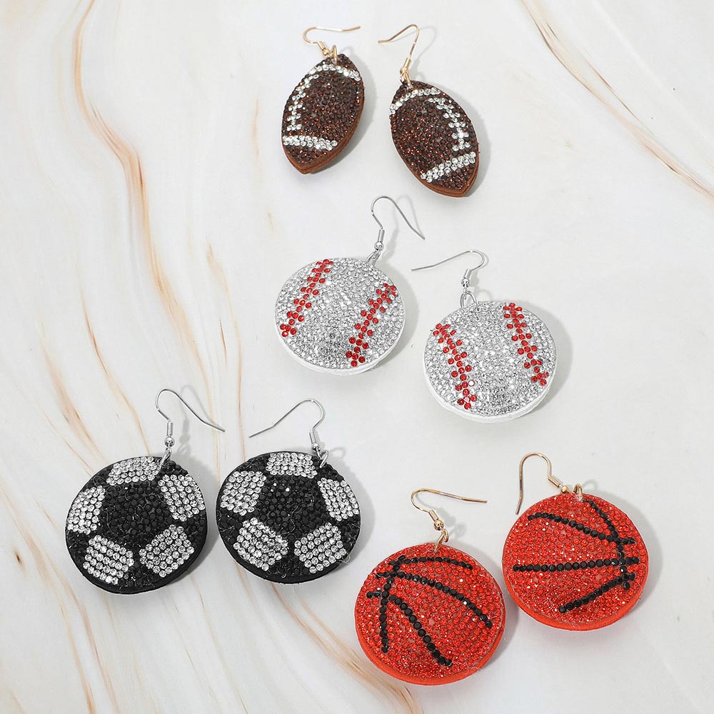 Bling Studded Felt Back Baseball Drop Earrings