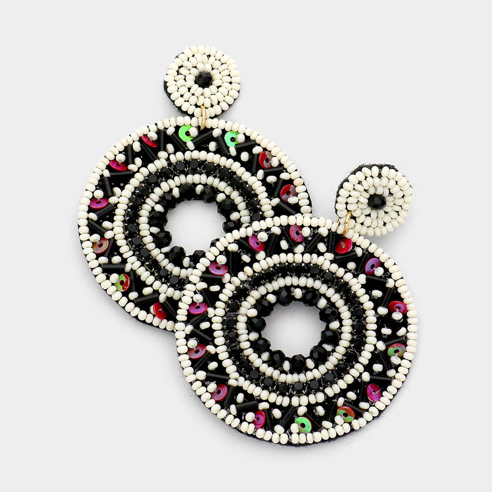 Boho Sequin Multi Beaded Open Circle Dangle Earrings