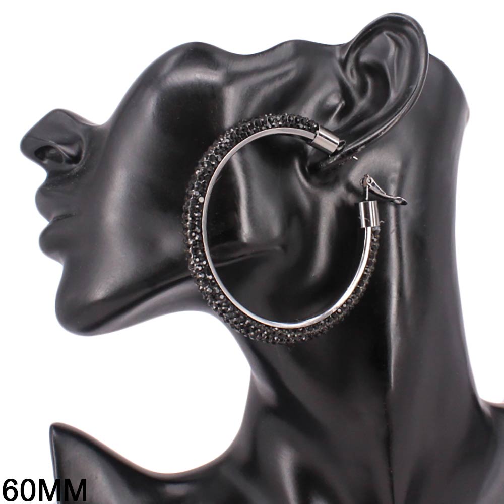 • Statement hoop earrings designed with a sleek curved silhouette and fully embellished surface for maximum shine. The bold 60mm size creates instant impact while remaining lightweight and comfortable for extended wear. Ideal for parties, festivals, night events, and trend-forward jewelry collections.