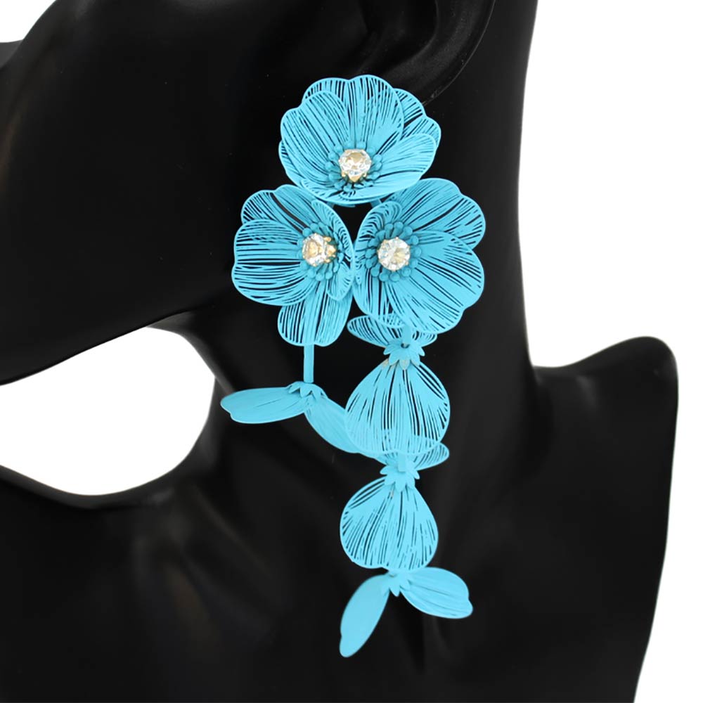 • Eye-catching floral cascade drop earrings designed to create elegant movement and bold impact. Features layered flower details with a lightweight feel, perfect for boutiques, resort wear, special events, and trend-forward collections seeking standout statement accessories.