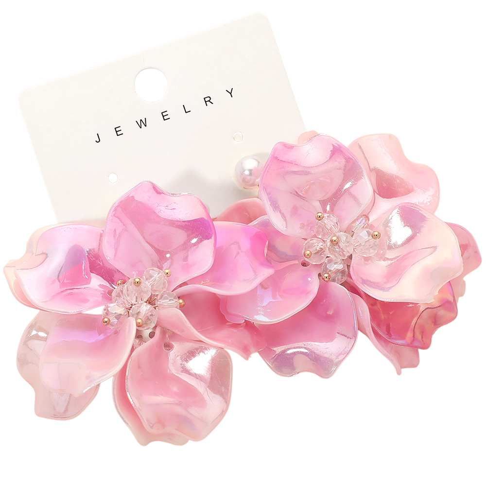 Details • Size : 2.5" X 2" • Post Back • Statement floral drop earrings designed with layered petal styling and dimensional detail for standout looks. Ideal for boutiques, seasonal assortments, gift displays, and trend-driven collections. A bold accessory choice for special occasions and everyday fashion edits. • Lead and Nickel Compliant