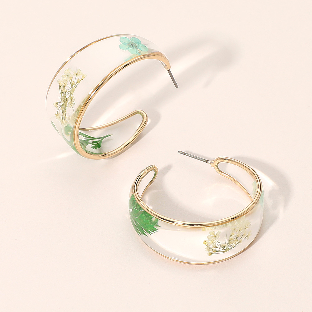 Details • Size : 1.3" X 1.3" X 0.6" • Post Back • Elegant hoop earrings featuring a smooth, contemporary silhouette with a nature-inspired design captured within clear contours. Lightweight and comfortable for everyday wear, they add a refined artistic touch to casual outfits while complementing dressier looks for evenings, events, or special occasions. • Lead and Nickel Compliant