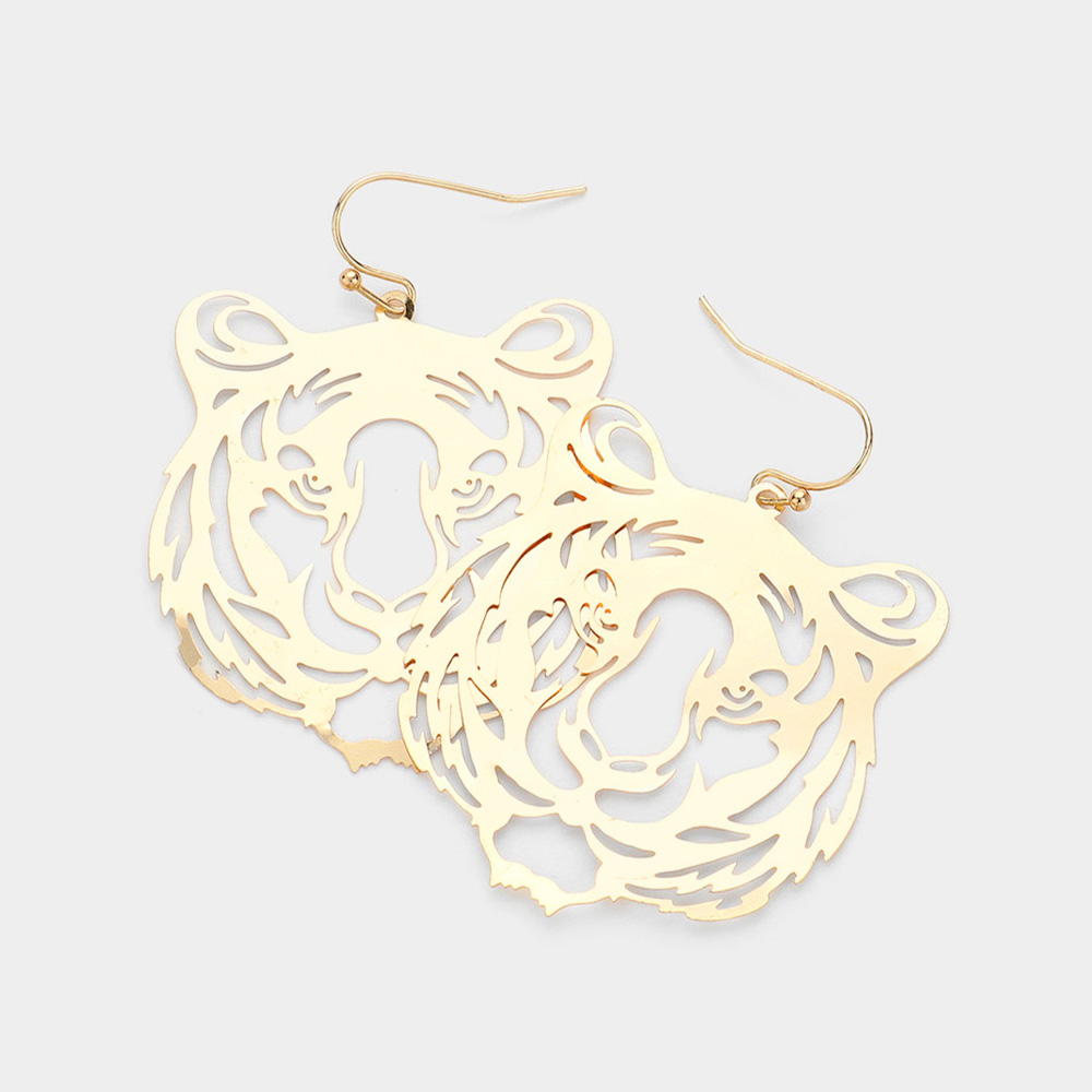 • Make a fierce fashion statement with these bold tiger face cutout earrings featuring an intricate design and lightweight style. Perfect for parties, everyday wear, or gifting, these earrings add a touch of wild elegance to any outfit.