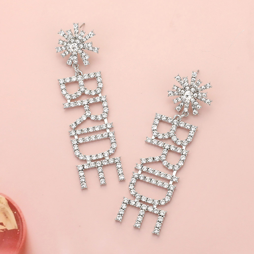 Bride Rhinestone Message Dangle Earrings Bride Rhinestone Message Dangle Earrings Bride Rhinestone Message Dangle Earrings