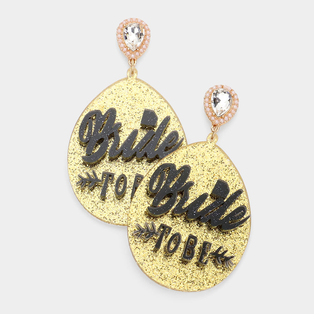 Bride TO BE Glittered Resin Teardrop Dangle Earrings